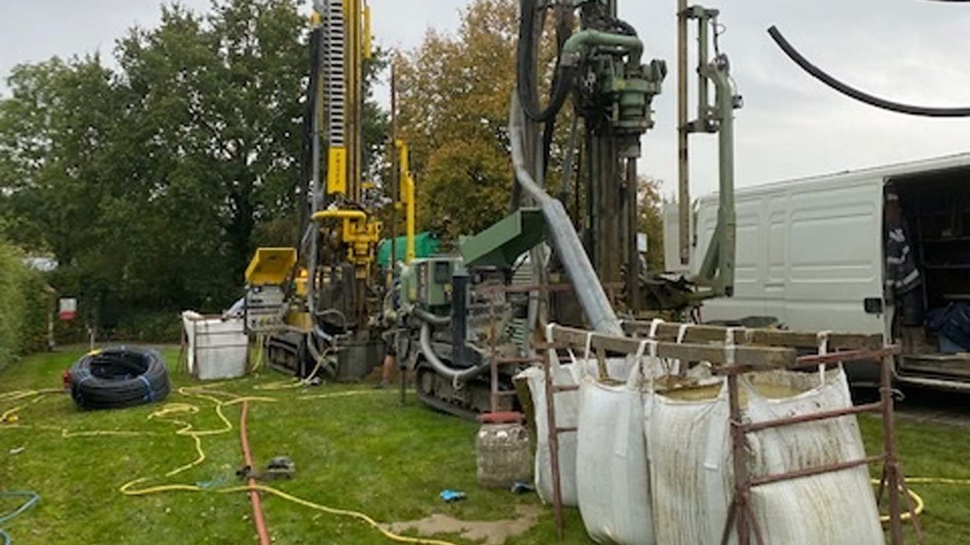 In oktober '21 zullen de geothermische warmtepompen in de technische ruimte geïnstalleerd worden.